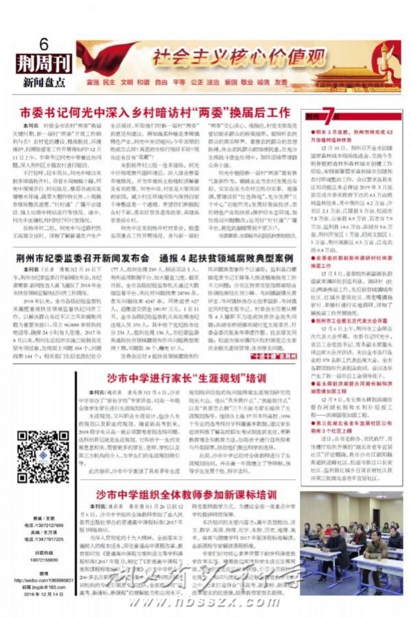 《荆周刊》2018年12月14日报道我校开办"生涯规划"家长讲座和组织教师学习新课标
