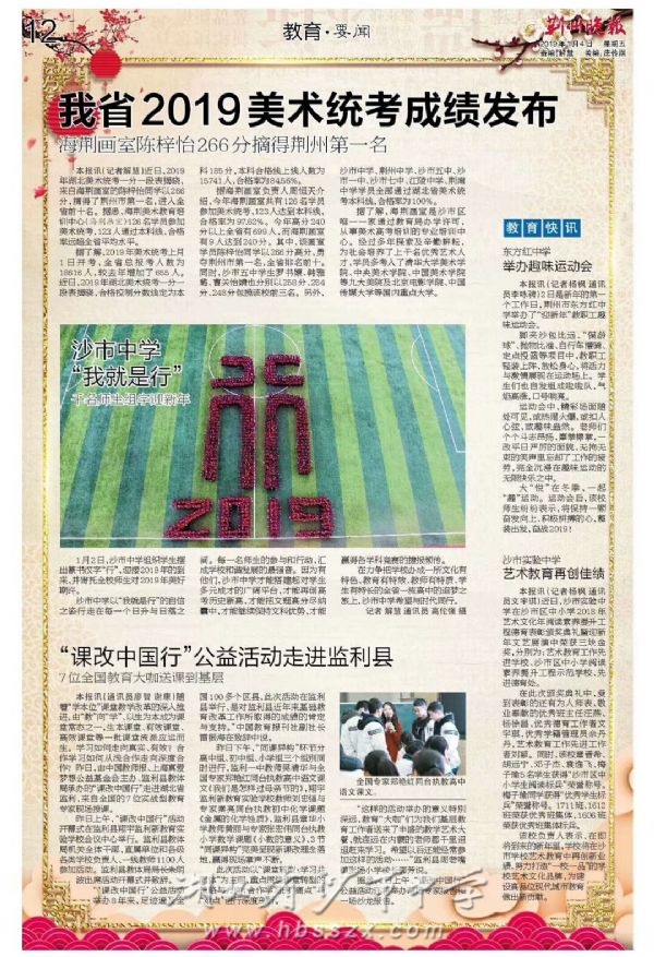 《荆州晚报》2019年1月4日报道我校摆出年度汉字"行"迎接新年到来