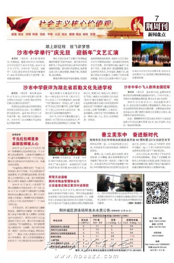 《荆周刊》2019年1月4日报道我校举行元旦晚会、获评后勤文化建设先进学校、体育生获全国冠军