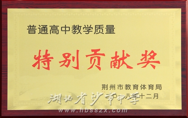 2018年12月学校荣获荆州市2018年普通高中教学质量特别贡献奖