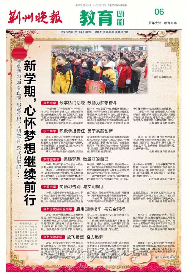 《荆州晚报》2019年2月22日报道我校开学仪式