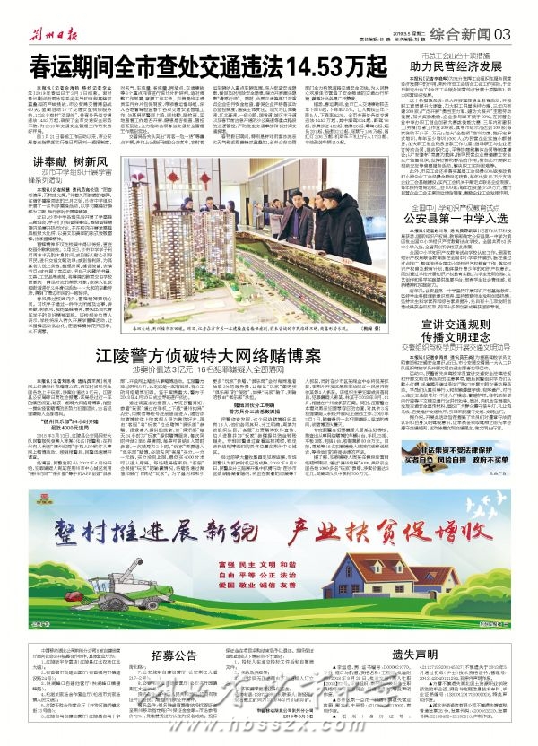 《荆州日报》2019年3月5日报道我校组织学雷锋系列活动