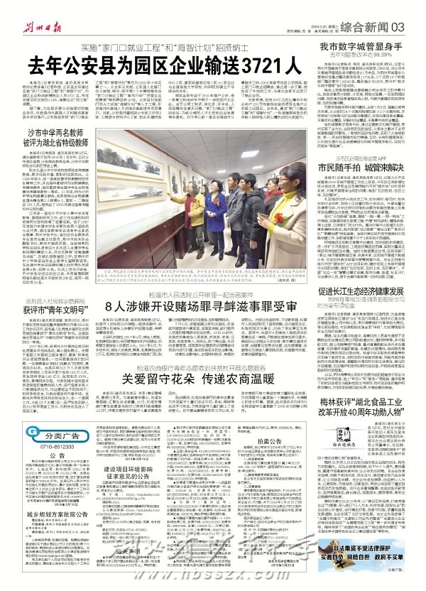 《荆州日报》2019年3月20日报道我校张志礼、江来波老师评上特级教师