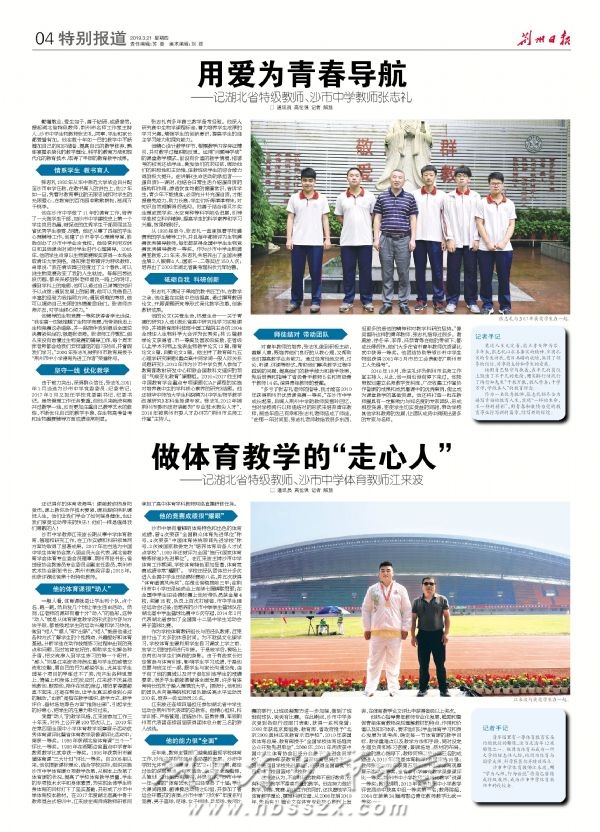 沙市中学体育教师江来波,用“学为人师,行为世范”将自己磨练成特级教师,成为沙市中学体育教师中的佼佼者。