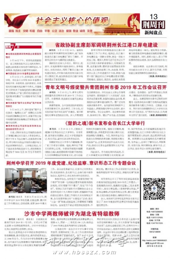 《荆周刊》2019年3月22日报道我校两教师被评为湖北省特级教师