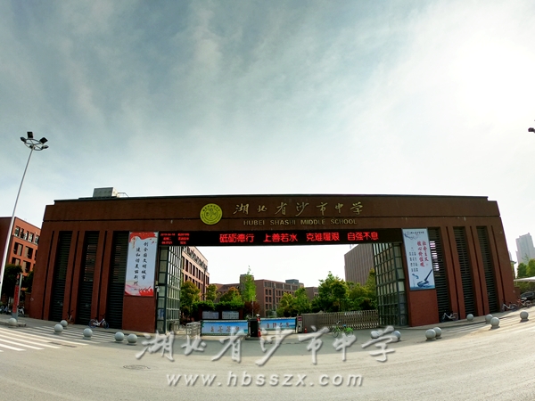 湖北省沙市中学车辆出入口位于津乡大道上、校园的西南方向。该出入口处修建有一个门楼,为学校的侧门,俗称“南门”或“西南门”。在学校的平面图上,处于图片左方红色箭头处。车辆出入口安装有车辆闸机,车辆需经保卫部门允许才能进出校园。