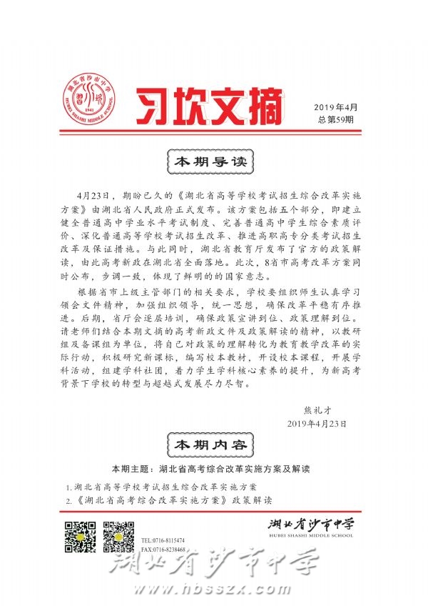 本期主题:湖北省高考综合改革实施方案及解读 导 读
