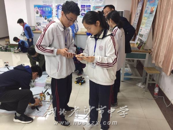 我校学生现场演示用手机操作机器人 4月28日,第19届中国青少年机器人竞赛湖北省选拔赛在武汉进行,经过紧张的角逐,近日,成绩揭晓,沙市中学代表队斩获佳绩,由我校1701班吴吕华、1702班田亚璇、1801班石佳仪等三位同学组成的代表队荣获了“机器人创意比赛”高中组第一名,入选了第19届中国青少年机器人竞赛湖北省参赛队,并将于今年8月中旬代表湖北省赴重庆参加全国决赛。我校是全省唯一获得“机器人创意比赛”省队资格的高中。