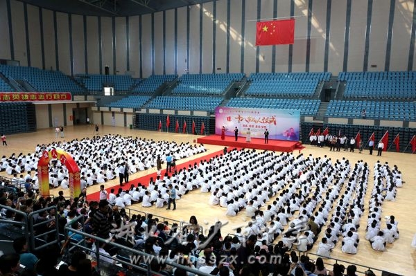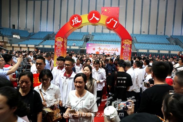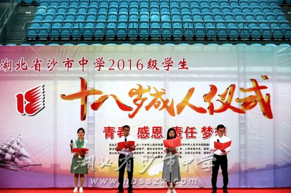 5月4日下午,沙市中学以“成长、感恩、责任、梦想”为主题的学生成人仪式绚丽启幕,2016级全体师生和家长齐聚荆州市体育中心篮球馆,共同见证属于高三学子的青春盛典。