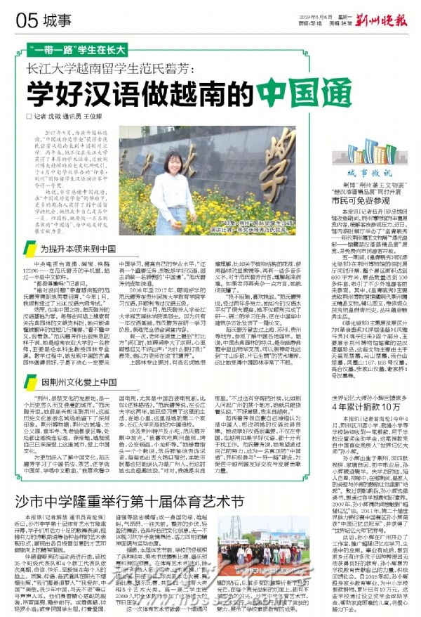 《荆州晚报》2019年5月6日报道我校举办第十届体育艺术节