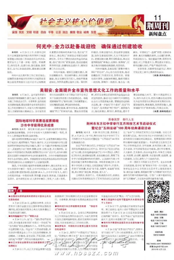 《荆周刊》2019年5月3日报道我校在国际地球科学奥赛选拔赛上获得佳绩