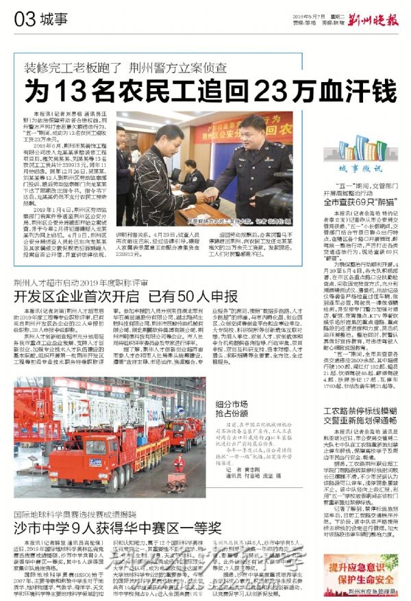 《荆州晚报》2019年5月7日报道我校学子在国际地球科学奥赛选拔赛上获得佳绩