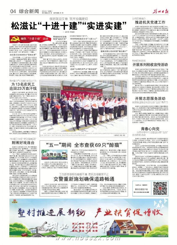 《荆州日报》2019年5月7日报道我校举行"青春心向党"主题团日暨系列表彰活动