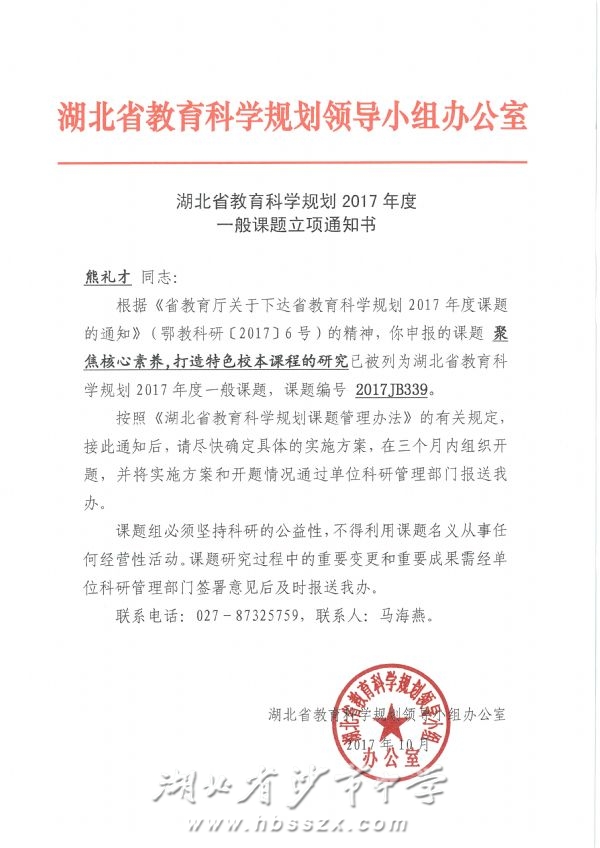 《聚焦核心素养,打造特色校本课程》获批湖北省教育科学规划课题立项 校本课程的开发和实施,能够有效促进学生综合素质发展,有效发展学生的非智力因素,开阔学生视野和思路。在新高考背景下,沙市中学构建校本课程的目标是围绕学生全面、充分、主动、和谐发展的需要,从课程科目和课程层次的可选择性入手,基于学生核心素养培养,着力打造“一体两翼五系”的校本课程体系,培养学生领袖气质、如水人格,以满足每个学生有差异发展的需要,促进每个学生的个性发展。