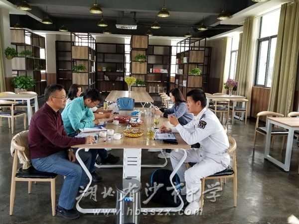 合影留恋 5月15日下午,海军大连舰艇学院万新龙老师来我校开展招生宣传。我校赵文华副校长、教导处潘磊副主任、部分高三年级班主任参与座谈。