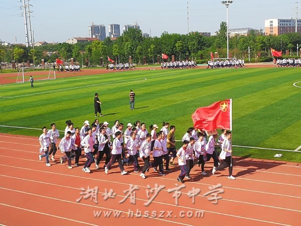 运动会以班级跑操热身来拉开序幕。鲜艳的红旗迎风招展,整齐的步伐铿锵有力,动感的音乐声、呐喊口号声,给运动会画上了高昂的序幕。各班班主任或左或右或前或后陪伴学生同跑,俨然同仇敌忾上战场的气势。