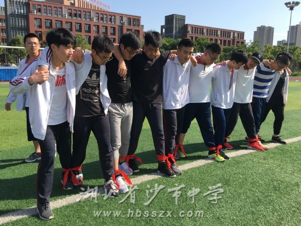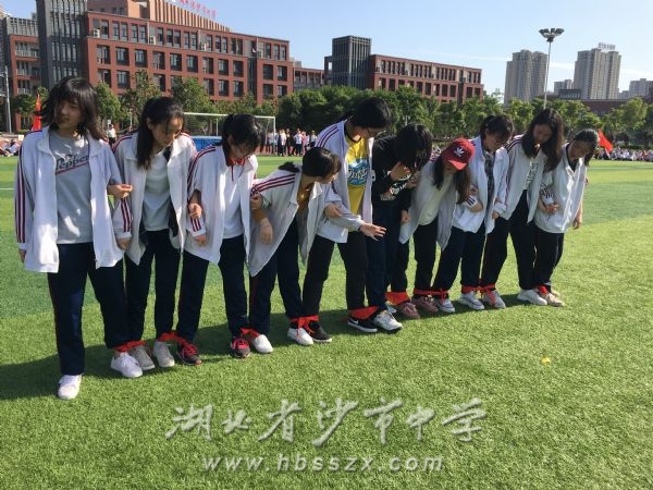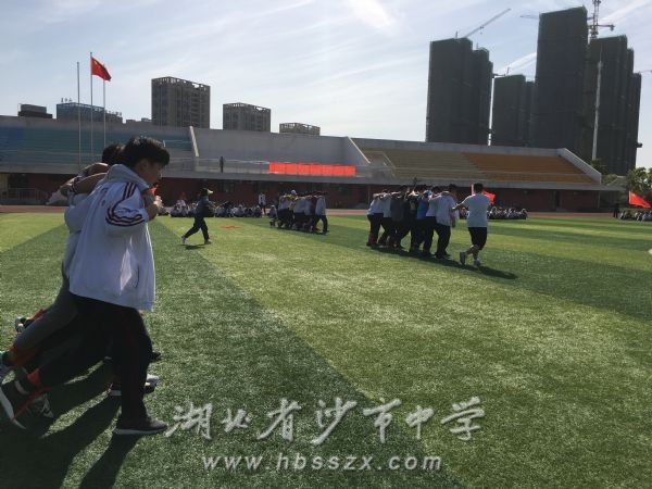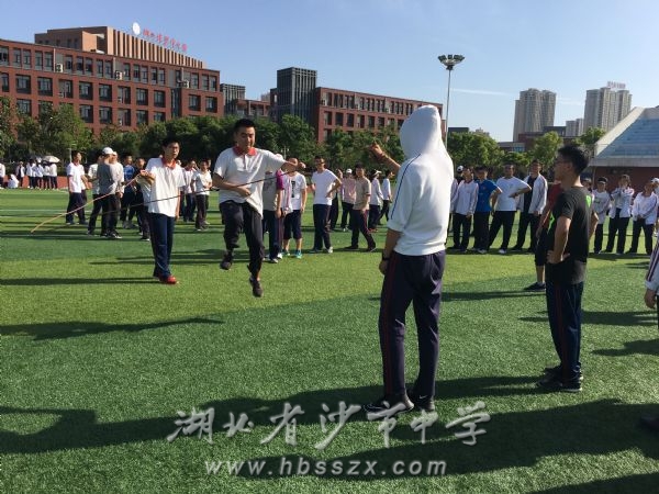 第一个项目是排山倒海,各班精选十人并立,脚踝互绑,听指令出发,计时排名。这是个有趣的项目,理科班会选十个强壮的男生出来,脚踝互绑,但左右一致,把握节奏,能很快完成任务。这个过程中合作意识要求高,大家行走前奔的时候,颇有点众志成城的感觉。个别班级出现绊倒绳子跌倒散伙笑趴的情形。文科班多是女生出场,柔柔弱弱的娘子军,被绳子困住,踉踉跄跄但也走到了终点,有的班级老师融入了学生队伍,师生并肩作战,豪气冲天。