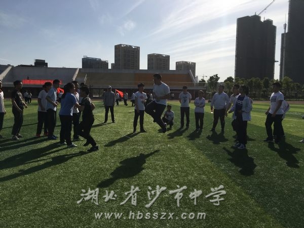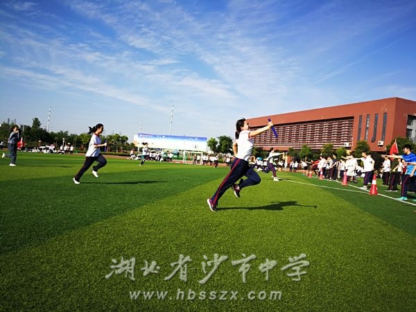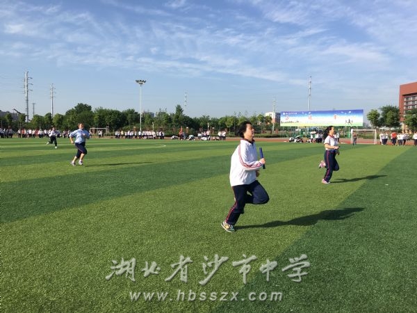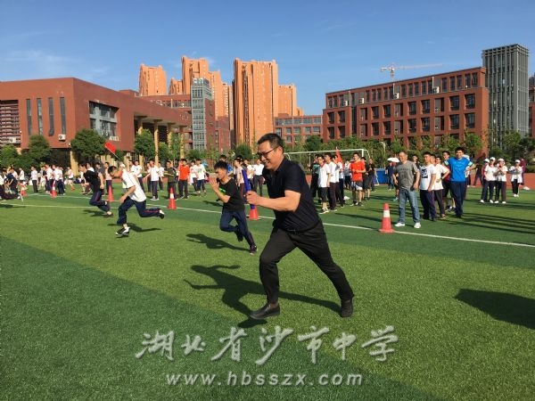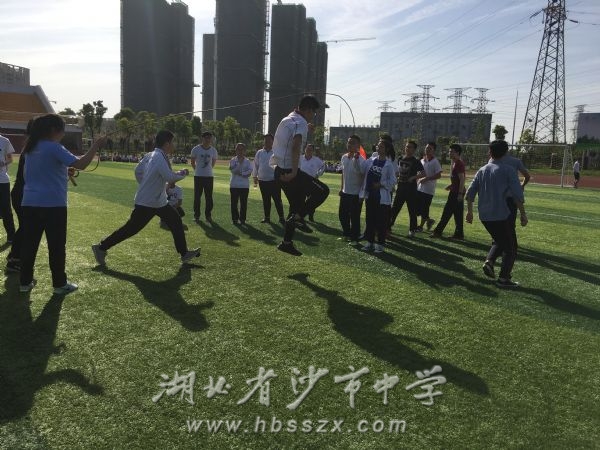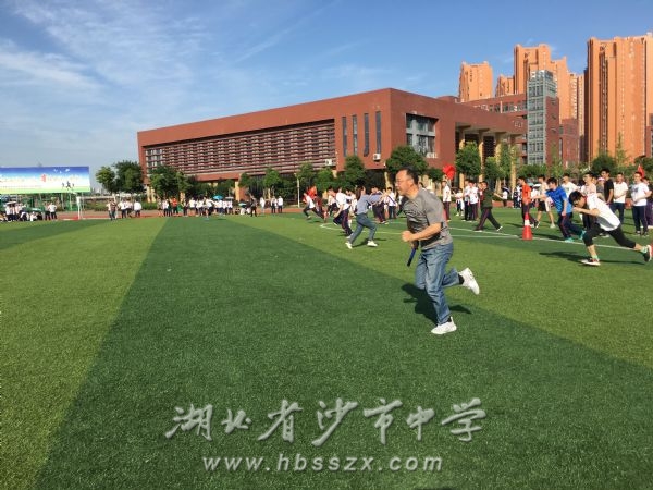 5月22日下午,沙市中学高三年级举办了“携手共进 超越自我”的师生趣味运动会。天空蓝得耀眼,阳光慷慨地洒在翡翠般的草坪上,师生们火热的奔跑欢呼,留下了美好而珍贵的画卷。这次运动会由学校体育艺术中心与高三年级联合主办,校长熊礼才、副校长赵文华参加了活动。