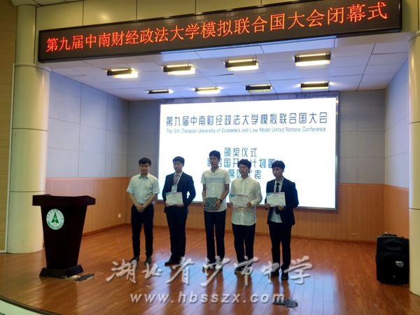 2019年5月31至6月2日,我校二十位学生代表在黄嘉懿和杨玉婷两位团委老师的带领下,共赴中南财经政法大学参加该校举办的第九届模拟联合国大会。