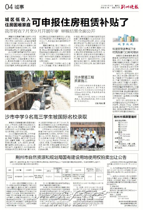 《荆州晚报》2019年6月26日报道我校9名高三学生录取国外名校