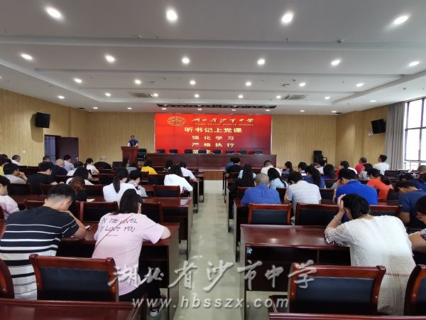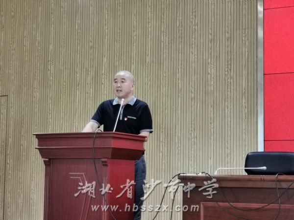 表彰仪式结束后,我校党委书记、校长熊礼才同志讲话并上党课。熊礼才同志首先从重视党的纪律、发挥模范作用、加强自我修养三个方面谈了党风廉政教育警示片《重整行装 利剑反腐》的启示作用。接着,熊礼才同志回顾了在过去一年里我校在党建工作、教育教学、学校管理等方面取得的成绩,熊校长指出,一年来,学校党员教师严格律己,主动奉献,在学校工作诸多方面率先垂范,创造了良好成绩,正是有了这样一支政治过硬,旗帜鲜明,敬业奉献的党员队伍才能带领着全校教职工克服重重困难,不断创造着沙市中学发展史上的奇迹。现在学校的发展已经站在了新的起点上,我们要进一步坚定理想信念,保持旺盛的工作热情,用实际行动践行入党誓言,立足新高考,开始新征程,在新一轮教改的浪潮中创造更加突出的业绩,为实现我校的长远发展作出更大的贡献!