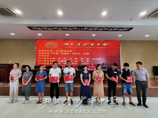 在庄严的《义勇军进行曲》的旋律中,全体党员起立,奏唱国歌,庆祝建党98周年大会正式拉开序幕。随后,党委委员、副校长赵文华同志宣读2019年“七一”表彰决定。此次受到表彰的共有一个优秀党支部、三名优秀党务工作者以及十二位优秀党员。