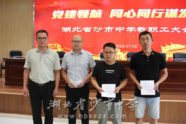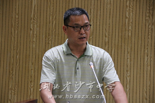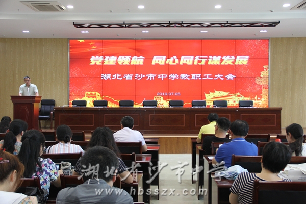 全体教职工大会会场 7月5日下午4时,沙市中学220余名教职员工齐聚综合楼二楼会议室,召开2019年春季学期最后一次全校教职工大会。大会的召开,也标志着2018-2019学年的胜利结束。