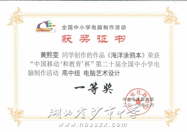 获得全国二等奖的袁欣友同学 全国中小学电脑制作活动由中央电教馆主办,是教育部“阳光高考”平台公示获奖学生名单的8项竞赛活动之一(包括五科竞赛、科技创新大赛、小小科学家活动、电脑制作活动等)。我校在历年的活动比赛中共获得了全国一等奖1项、全国二等奖3项、全国三等奖6项、省一等奖19项、二等奖28项、三等奖15项。