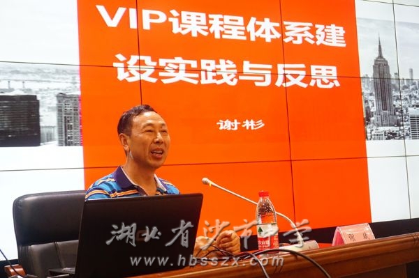 19日下午,夷陵中学课程研究中心主任、政治特级教师,宜昌市谢彬名师工作室主持人谢彬做《VIP课程体系建设与反思》讲座。谢老师如数家珍地介绍了夷陵中学独有的“VIP课程体系”——由学生自主选修的多样化拓展课程“V课程”,学生自我认知与自我发展课程“I课程”和基于国家课程规定的基础性课程“P课程”共同组成。这个体系不仅体现了国家统一的基础性课程与促进学生特色化发展的拓展课程的统一,而且满足了学生全面发展的基本需要和学生个性发展的特殊需求。通过谢老师详实生动的介绍,老师们看到,在夷陵中学,丰富多彩的VIP课程,特别是研学旅行课程,让很多同学高境界做人、高水平学习、高品位生活,真正使校园成为全校师生精神的家园、智慧的学园和成长的乐园。