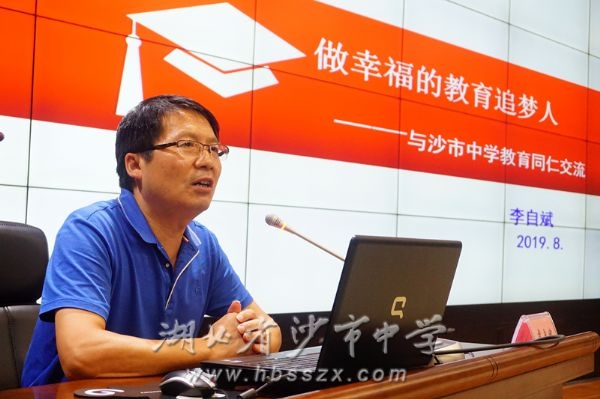 20日上午,襄阳四中教务处主任、历史特级教师李自斌做了题为“做幸福的教育追梦人”专题讲座。李老师是是受到中央领导领导接见的全国先进工作者,荣誉等身。他以习主席在全国教育大会的讲话为切入点,结合自己多年的教学经验,从理论与实践两个层面,论述了如何成为一名幸福的教育追梦人:一是从精神气开始;二是坚持有效与投入;三是做有特色有亮点的师者;四是主动改变与学习,重新起跑;五是处理职场关系,和谐教育生涯。李老师充满激情,以 “真话、真心、真事”,为所有的教育同仁指出了一条成长为“信仰坚定、灵魂丰盈、教艺高超、举止文雅”的师者之路。