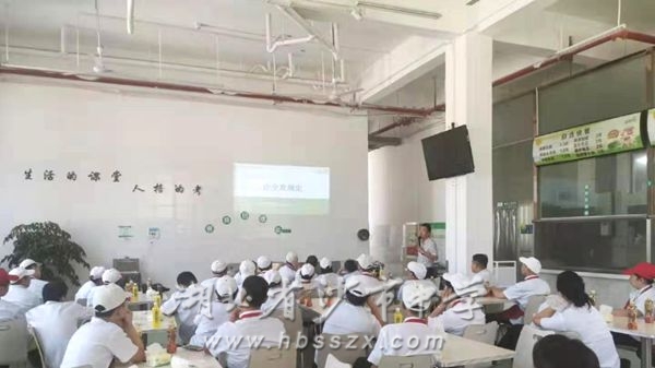 8月25日下午,食堂负责人组织50名新老员工学习了餐饮服务业的食品卫生安全知识,清洗、切配、加工等各关键环节的规范操作规程,并宣布了员工的工作分工及岗位职责。学校膳食委员会多名领导参加了此次培训会议。校党委委员、工会主席戴永平强调了食堂安全问题,要求各员工务必按照规范程序进行操作,确保食堂用电、消防与机器操作的安全;对于突发事件如停水、停电、停气等提前做好预案。