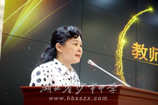 获奖教师代表、全国优秀教师、荆州市优秀班主任李艳发言,她叙述了自己从教二十四来年严谨踏实,虚心求教,传道、授业、解惑的历程,也诠释了一名师者的内心的丰盈与富足。