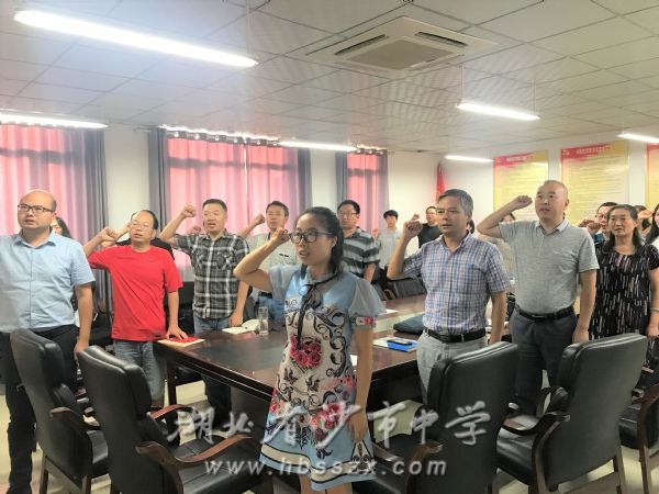 2019级支部重温入党誓词 为提高沙市中学党员干部的法律素养和服务荆州经济社会发展的能力,深入扎实开展普法宣传教育活动,9月9日,湖北省沙市中学各支部组织开展了九月主题党日活动。活动由各支部书记主持,全体党员分支部参加了活动。