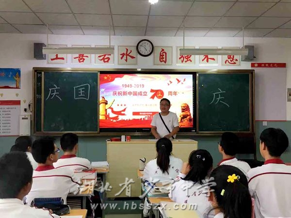 今年恰逢中华人民共和国70周年华诞。为了纪念祖国成立70周年,缅怀祖国走过的光辉历程,培养学生对祖国的崇敬之情,我校于2019年9月25日下午第四节课组织开展“喜迎国庆”主题班会。