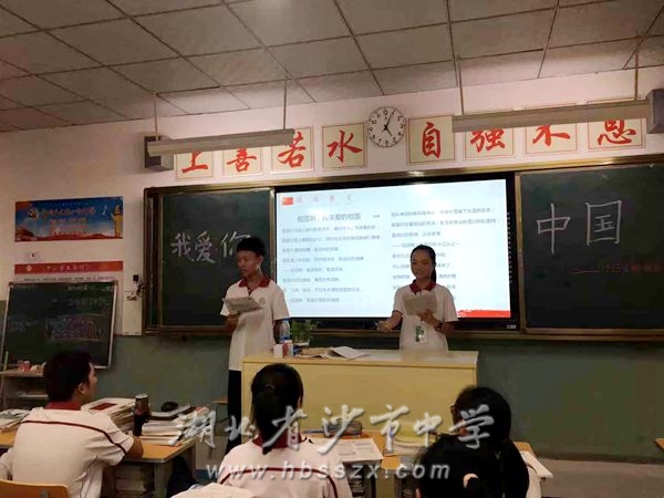各班通过唱红歌、诵红诗、知识竞赛等生动有趣的形式,对学生进行爱国主义教育;以及通过观看相关视频,对祖国的历史、文化和取得的一系列成就进行普及。通过此次班会,不仅让学生学到了关于祖国的历史文化知识,同时激发了学生的爱国热情,增强民族自豪感和荣誉感。