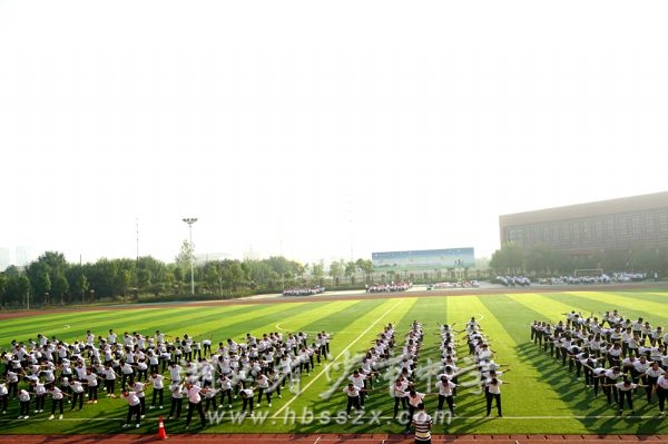 本次运动会一改以往以班级方阵入场的方式,采用了队形组字和合唱红歌的形式,既有创新,又进行了爱国主义教育。