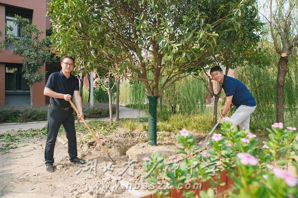 学校党委书记、校长熊礼才和校友们进行了亲切的交谈,他向校友们介绍了沙市中学新校区的建设情况以及近年取得的丰硕教学成果。校友们向学校捐献了两株金桂,祝福母校学子们金榜题名、蟾宫折桂。熊校长和校友代表曾添翼手握铁锹,脚踩泥泞,共同种下这两棵蕴含沉甸甸希望的树苗。