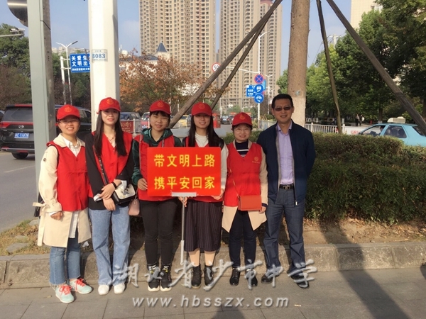 2019年10月13日上午八点,我校教工团支部五名青年教师在学工处主任李雪冰的带领下奔赴塔桥路和江津路交汇处的路口,开展了一次交通文明劝导活动。
