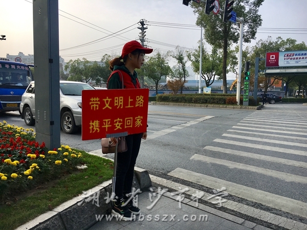 迎着寒秋明朗的晨曦,顶着扑面而来瑟瑟的冷风,老师们头戴小红帽,身穿小马甲,手举文明劝导标语牌,分别坚守在各个路口,对不文明行为进行劝导。为了更有效阻止擅闯红灯的行人,老师们想出了各自的方法:有的充当人工解说员,大声提示当前红绿灯情况;有的干脆站在路口化身人墙,用张开双臂的形式提醒后面的行人不要在红灯时通行。劝导过程中,遇到有需要的行人们,老师们也都面带微笑地提供尽可能的帮助,充分展现了我校志愿者的风采,也收获了许多市民的认可和好评。