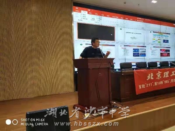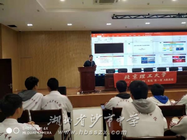 11月1日下午四点左右,沙市中学迎来了北京理工大学硕导王崇文副教授。在综合楼二楼报告厅,王教授为高一习坎学子做了《虚拟仿真技术助力北京奥运和国庆》的讲座。北京理工大学属于首批“211”、第10所“985”、首批“双一流”大学,王教授曾是2008年“北京奥运开闭幕式全景式智能仿真系统”的主研人员,他结合生动的PPT为同学们演讲仿真设计技术,极大地激发了同学们的兴趣。沙市中学副校长赵文华出席了会议,并在会上接过了王教授赠予的大喜报和预警机。红色喜报上被录取的习坎学子名单与北理工参与研发的预警机,都加深了高一学子的学习力。这场大会由教导处副主任潘磊主持。