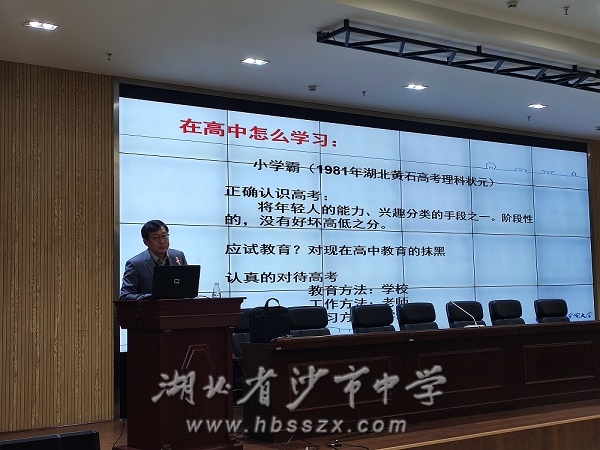 杨国强教授,祖籍湖北黄石,1981年以全市理科高考状元的优异成绩考取北京大学,1991年荣获中国科学院博士学位。他以自己的亲身经历,向我校学生传经送宝,希望他们树立正确的考试观,正确认识高考,认真对待高考,确立明确目标,掌握科学方法,享受高中生活。