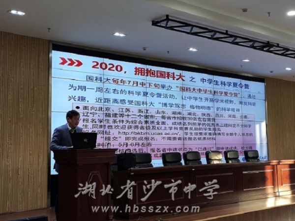 杨国强教授,作为中国科学院大学副校长,首先无比自豪地向我校师生介绍了中国科学院大学及2020年本科招生计划情况,激励我校优秀学子好好学习,踊跃报考,争取早日来到中国科学院大学学习深造。