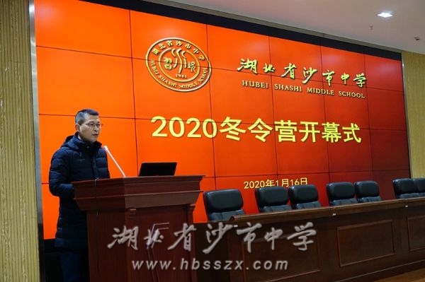 副校长徐善慧在致辞中向营员们介绍了本次冬令营的整体安排,展示了学校在环境设施、竞赛成绩、奖助学金、素质教育等各个方面的强大优势,并相信在沙市中学无论是学习还是体验活动,都一定会成为学生美好的回忆。