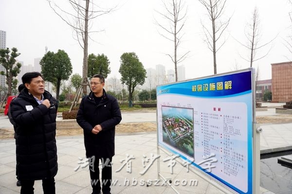 李建明同志向陪同调研的荆州市领导谈当年沙市中学新校区立项和建设经历 下午5时,李建明一行下车后首先查看了《沙市中学校园设施图解》,并与陪同调研的市委市政府领导谈及当年规划建造新沙市中学的经历。李建明同志曾担任荆州市人民政府市长。在他的领导下,沙市中学新校区得以立项,并按照规划设计施工。建设期间,他也多次到工地视察。如今,一座崭新的极富园林水乡特色的新学府巍然耸立在荆州最富生机的沙北新区,沙市中学的历史也从此翻开了新的一页。