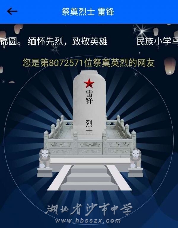 寄托哀思 为深入学习贯彻习近平总书记关于防控新冠肺炎疫情和英烈褒扬的重要指示精神,缅怀革命先烈,继承发扬革命传统,致敬疫情中的“逆行英雄”,2020年4月4日,我校组织开展了“致敬·2020 清明祭英烈”网上祭扫主题党日活动。