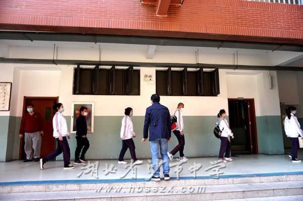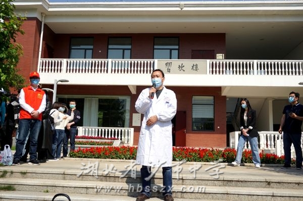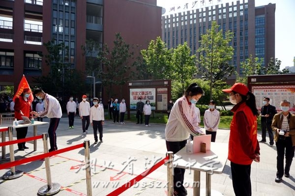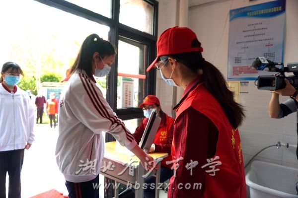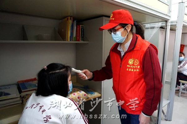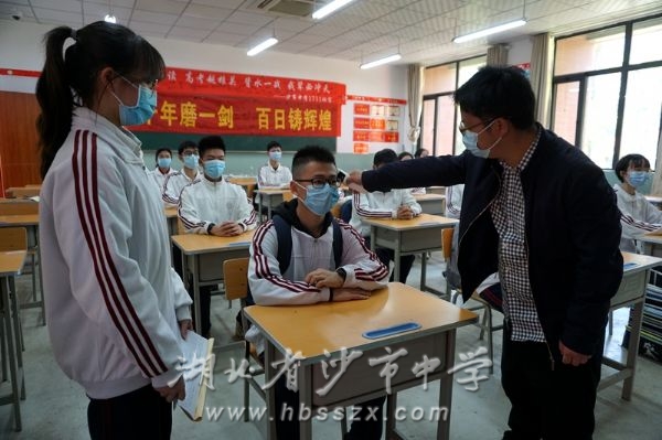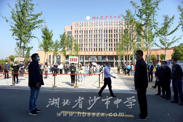 校医、消毒员、志愿者全副武装,学生间隔一米排队入校,依次监测体温,体温异常马上隔离观察,多次体温异常立即启动应急预案……校园榴花照眼明,枝间时见子初成,经过始料未及的漫长假期,沙市中学高三年级复学复课终于进入倒计时。为做好疫期平稳有序安全复学,4月27日,沙市中学开展了疫情防控复学演练,实景演练了入校、上课、课间休息、就餐、就寝以及发热学生的发现、报告、送诊、排查、善后全过程。学校管理团队全体成员、全校班主任、备课组长、家长委员会代表一起参加了本次演练,市卫健委、市疾控中心负责人进行技术指导。