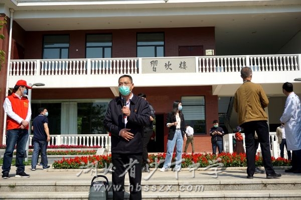 演练结束后,市教育局组织观摩演练的三区学校校长进行总结点评。沙市中学校长熊礼才向校长们介绍了沙市中学疫情防控的三大力量:管理者的领导力、习坎人的凝聚力、党员的示范力。为了充分发挥基层党团组织的战斗堡垒作用和广大党员先锋模范作用,学校在各个主要场所都设置了党支部先锋示范岗,安排有专门的值班表,做到让党旗飘起来、党徽亮起来、党员站出来,打一场党领导下的人民战争,坚决打赢复学后疫情防控阻击战。
