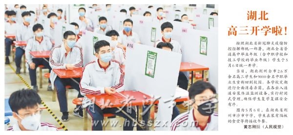 湖北高三开学啦! 按照湖北省新冠肺炎疫情防控指挥部统一部署,湖北全省普通高中毕业年级(含中职学校和技工学校的毕业年级)学生于5月6日统一开学。