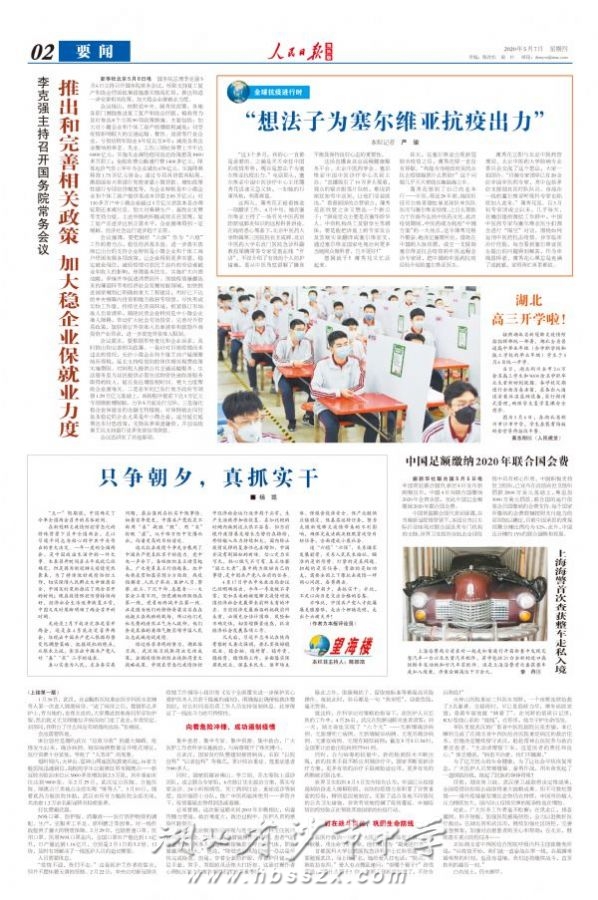 5月6日,沙市中学高三年级学生按上级要求正式复学。复学后学生在校生活的镜头在2020年5月7日《人民日报》(海外版)第2版登出。