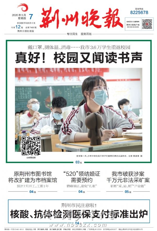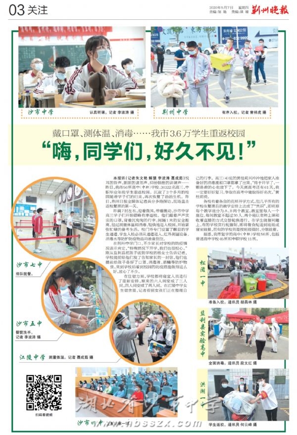 《荆州晚报》2020年5月7日报道我校高三复学